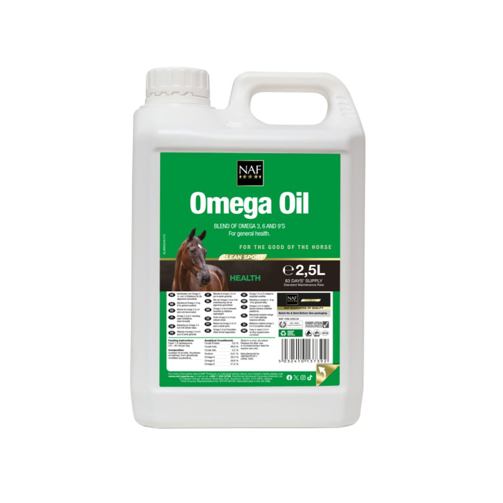 Omega Olja är rik på omega 3, 6 och 9 fettsyror och tillför långsam energi som hästen effektivt kan ta upp och använda. Idealisk vid uthållighetsdiscipliner som dressyr, fälttävlan och distans. En foderstat med hög andel olja bör balanseras med antioxidanter, se gärna D-Tox eller Vitamin E, Selen & Lysin för detta.