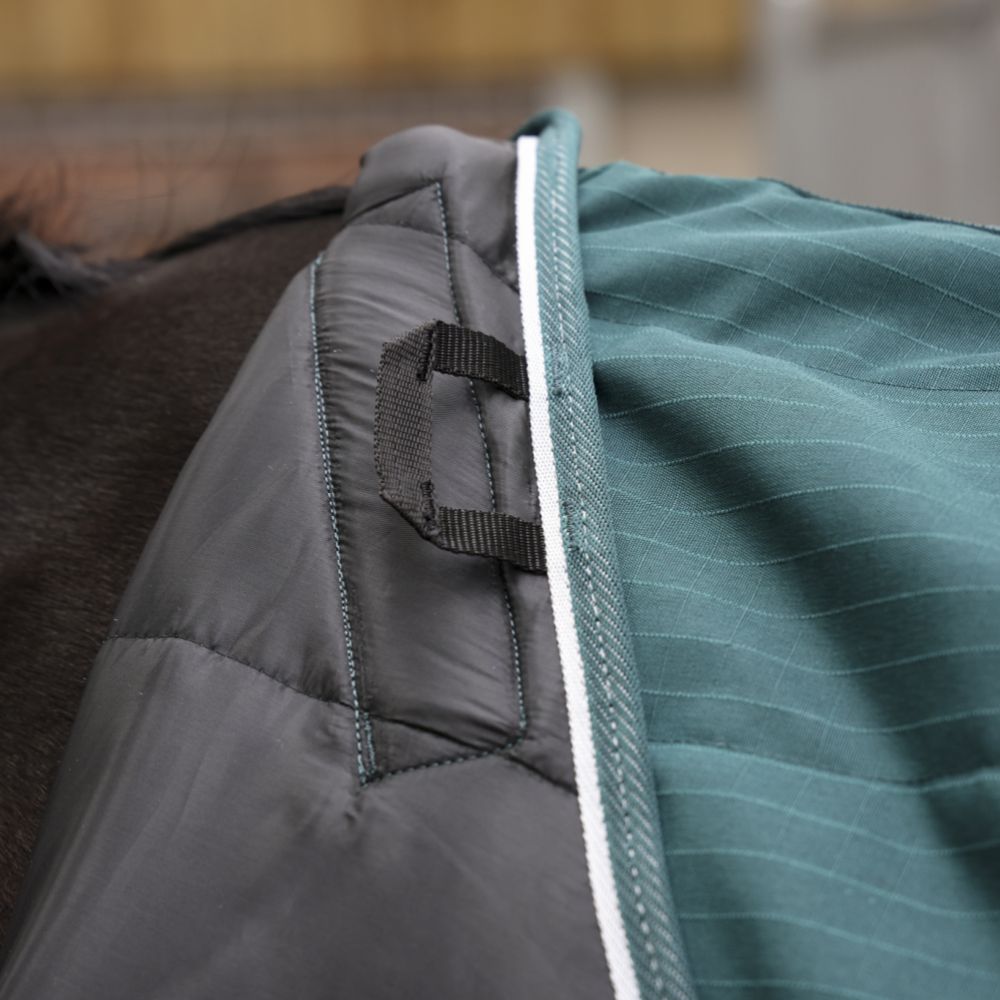 Slitstarkt stalltäcke i 600D yttermaterial med 200g fyllning. 210D innerfoder, justerbara bogspännen, justerbara kryssgjordar, svanssnöre och svanslapp.