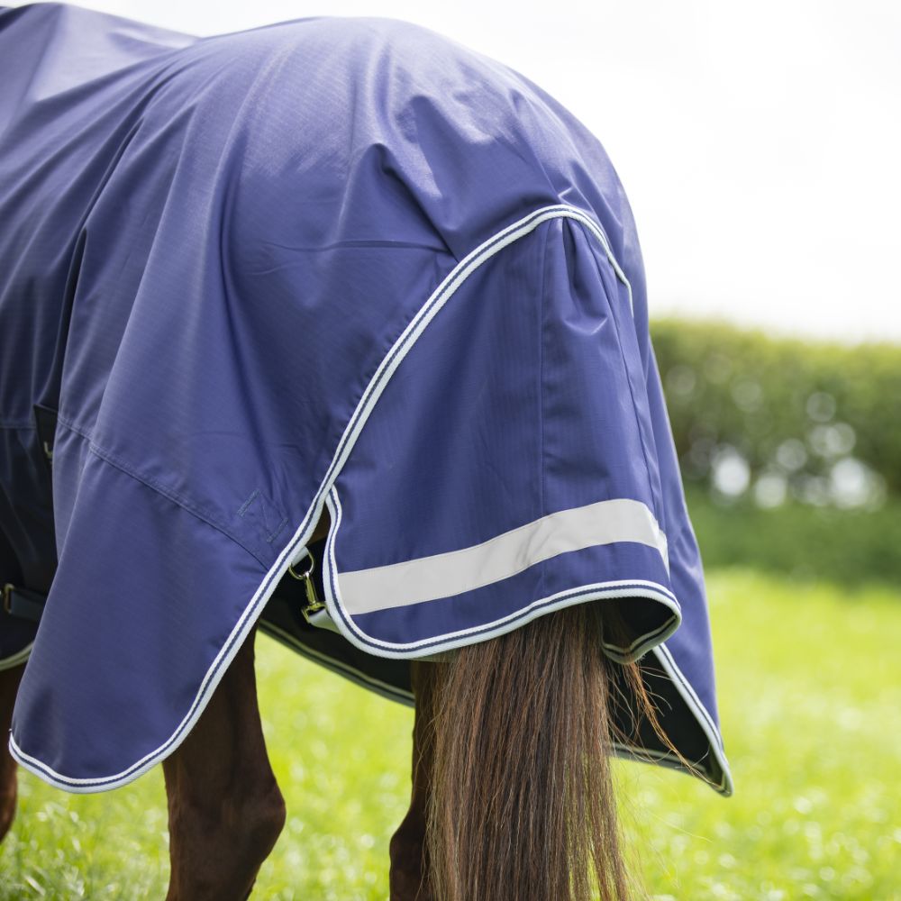 Regntäcke som håller hästen torr vid mildare väderlek. Djupa bogveck skapar fri rörlighet vid aktivitet. Snabbknäppen fram med kardborreknäppning på insidan. Separat halstäcke tillkommer för att enkelt kunna ta på och av beroende på väderlek och behov. Justerbara kryssgjordar, justerbar svansrem samt en generös svanslapp. Reflexdetaljer. Teknisk info: ShireTex® 600 denier ripstop, PFC-fritt material med tejpade sömmar. 3000 WP vattentäthet, 3000 MVP andasfunktion. Durable Waterproof Repellent (DWR) förhindrar mättnad - vatten pärlar på tyget och rinner av. WarmaRug-kompatibel - Uppgradera täckets värmeklassificering med hjälp av separata liners i 100 g eller 200 g. Tvättmaskintålig.
