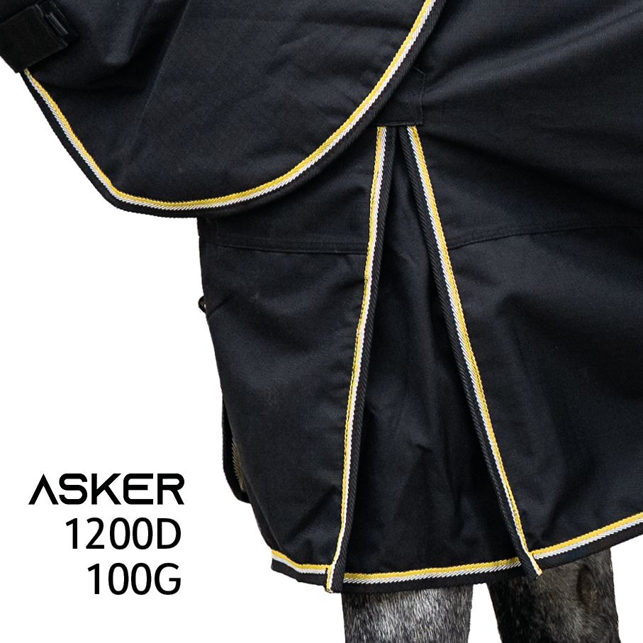 Asker erbjuder hållbara och prisvärda hästtäcken för alla väder. Täcke i 100g med 1200 Denier inklusive separat halstäcke. Denna modell finns även i storlek 140cm.