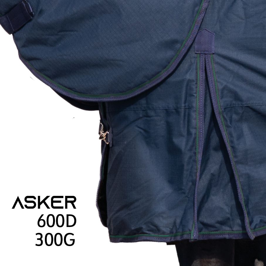 Asker erbjuder hållbara och prisvärda hästtäcken för alla väder. Regntäcke i 300g med 1200 Denier inklusive separat halstäcke. Denna modell finns även i storlek 140cm.