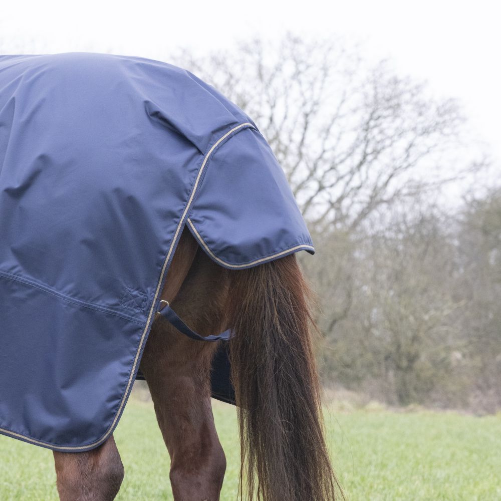 Prisvärt regntäcke med Shires fantastiska passform. 840 denier,tejpade sömmar, stark rip-stop, mycket god andningsfunktion,T-spännen kryssgjordar, svansrem och generös svanslapp.