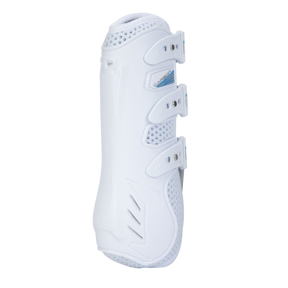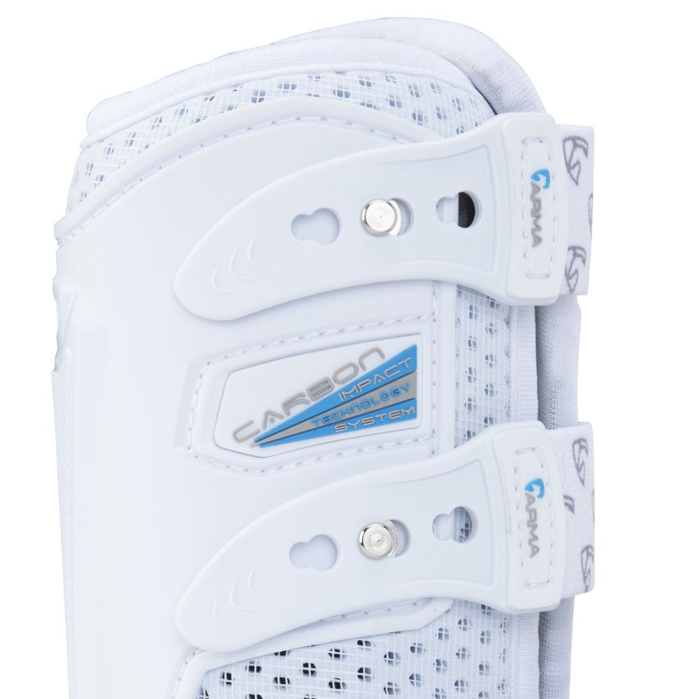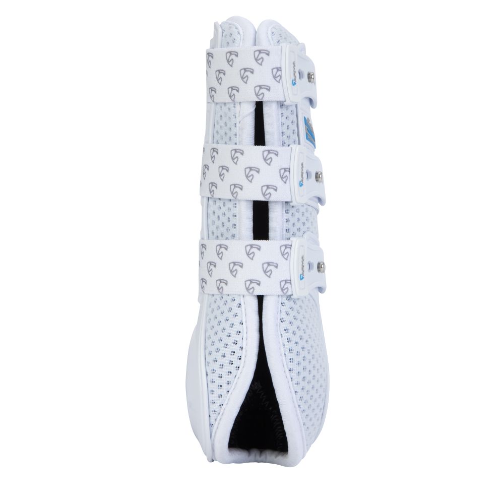 Designad med perforeringar och mesh som ökar luftflödet runt senorna och håller benen svala. Med ergonomiskt TPU-skal som skyddar men följer hästens rörelser. Elastiska remmar med justerbar knappknäppning. Enkla att ta på och torkar snabbt efter träningen.