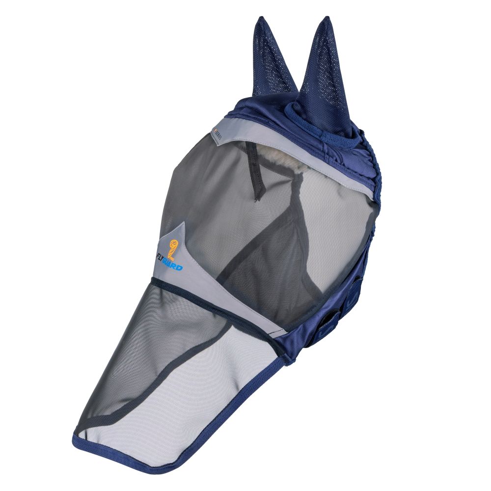 Shires FlyGuard Flughuva i finmaskig mesh med öron och heltäckande skydd för nosen via den fyrkantiga delen. UV-skydd +70%