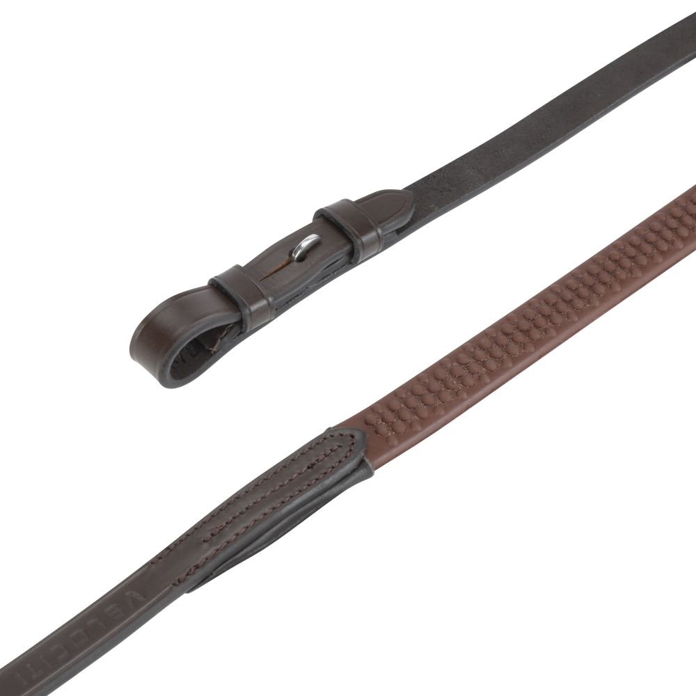 Dessa tyglar har gummigrepp med tydliga noppor som ger mjukt men effektivt grepp. Rostfria beslag. Den enkla designen ger Velociti GARA-läder ett tidlöst utseende.