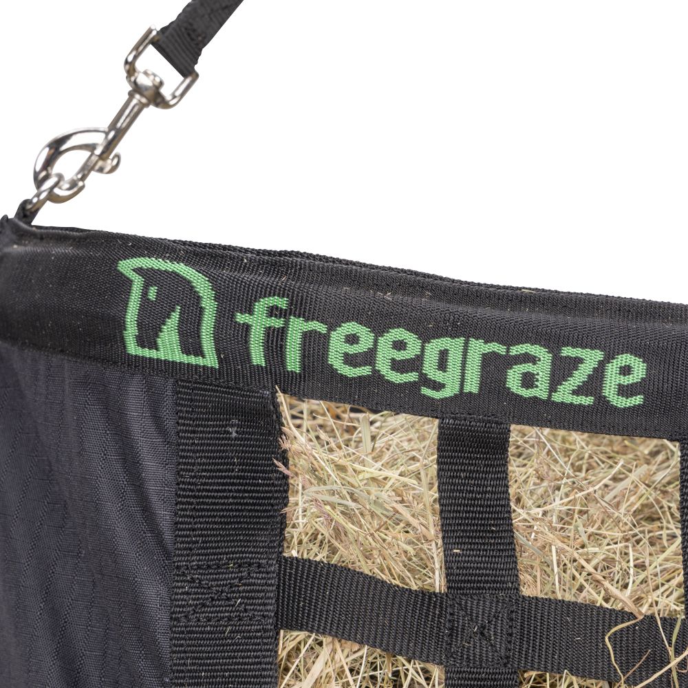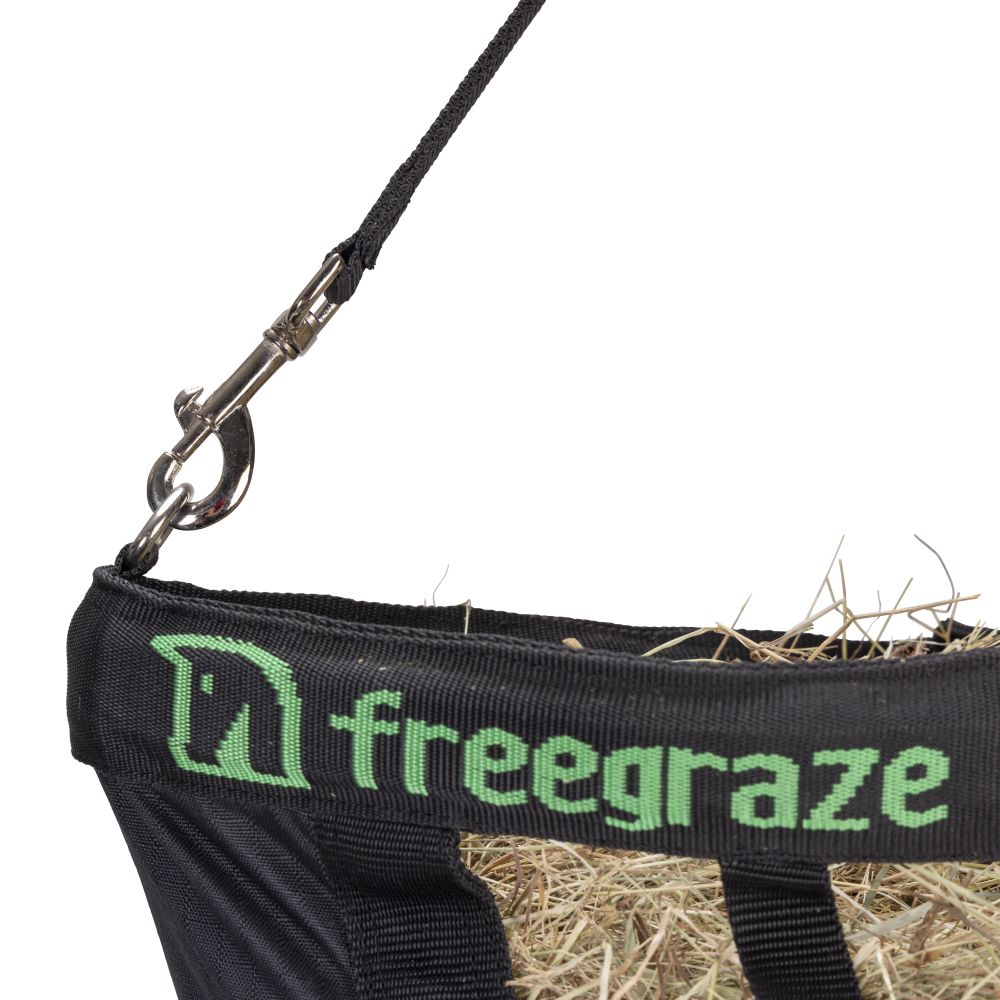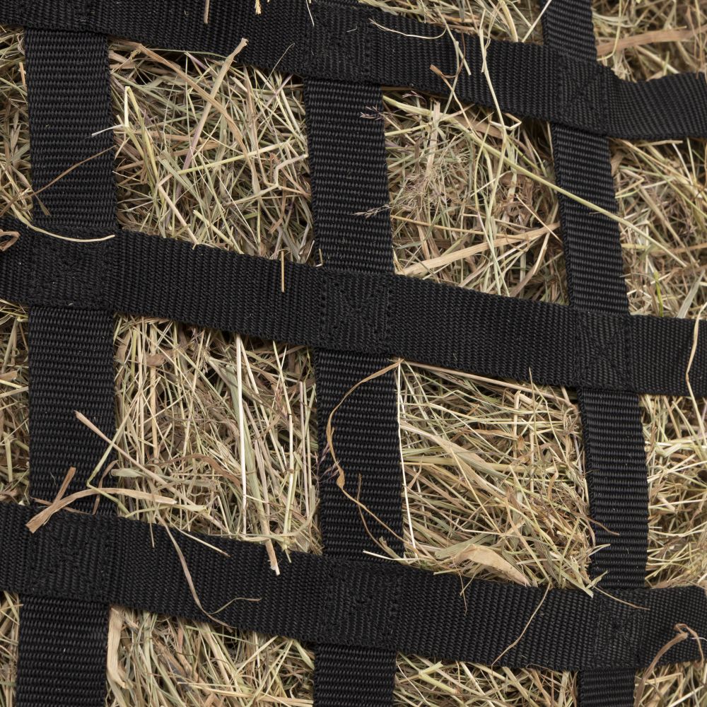 Frontutfodrat hönät i slitstarkt webbnät med små maskor, vävd baksida för bättre hygien mot vägg. Toppöppning med enkel påfyllning. Flera upphängningsalternativ beroende på plats och utrymme. Levereras med 2 justerbara upphängningsremmar med clips. Rutstorlek: 5 cm. Kapacitet: Liten = ca 3,75 kg Stor = ca 6,25 kg