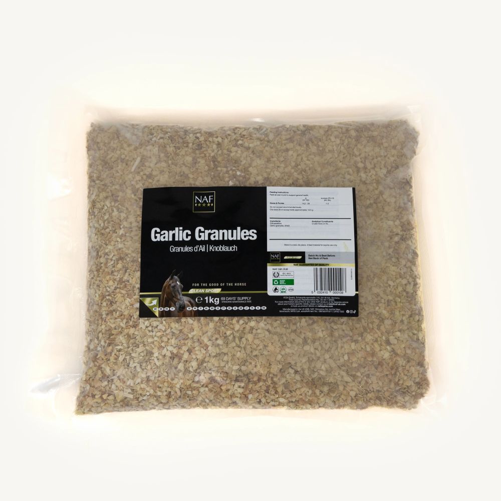 Vitlöksgranulat. Den traditionella vägen till allmän god hälsa. NAFs vitlöksgranulat är tillverkade av 100 % ren vitlök, en av världens mest välkända örter – med anor ända tillbaka till romartiden. Oavsett om de används för att öka aptiten eller främja allmän hälsa är dessa granulat ett utmärkt tillskott i din hästs foderstat.