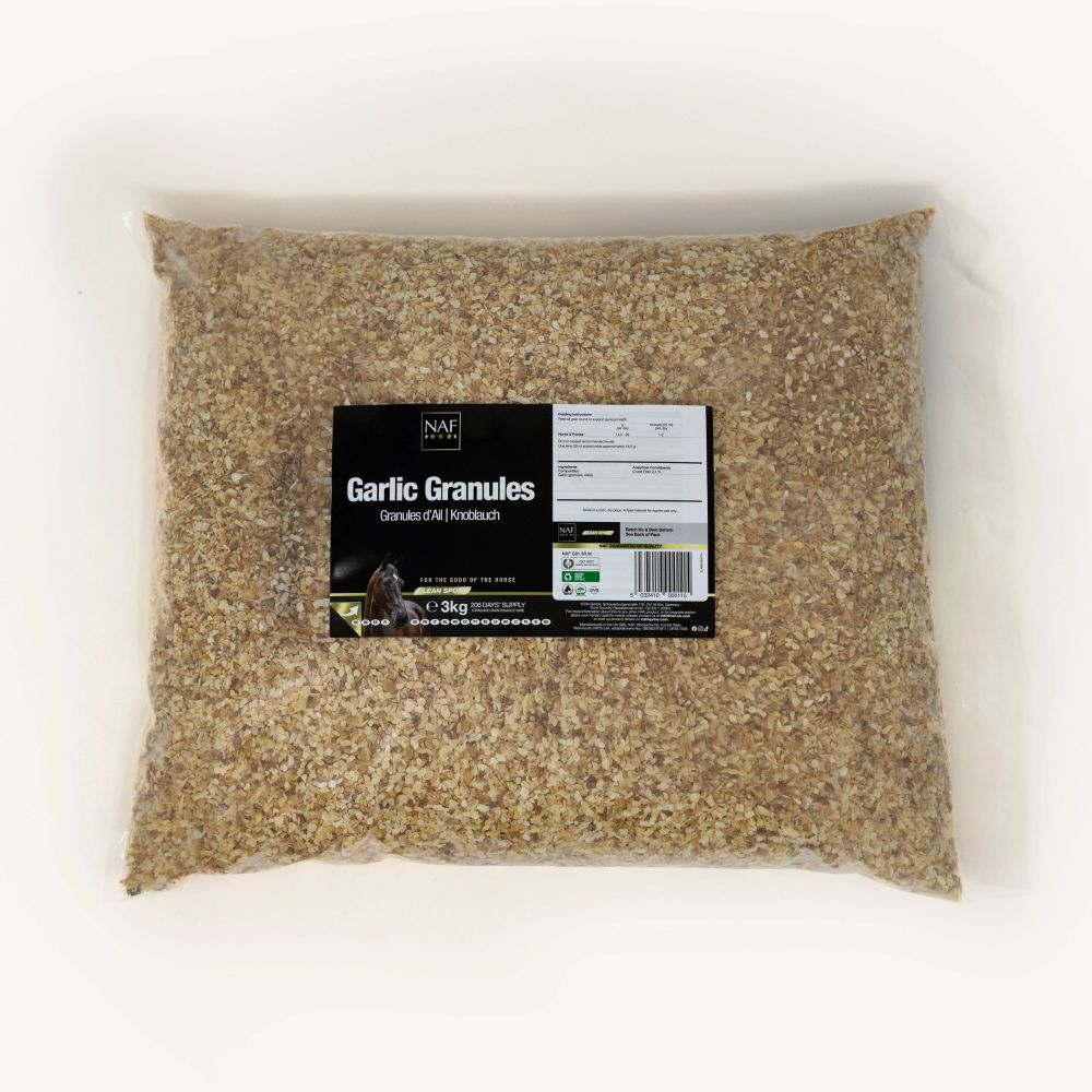 Vitlöksgranulat. Den traditionella vägen till allmän god hälsa. NAFs vitlöksgranulat är tillverkade av 100 % ren vitlök, en av världens mest välkända örter – med anor ända tillbaka till romartiden. Oavsett om de används för att öka aptiten eller främja allmän hälsa är dessa granulat ett utmärkt tillskott i din hästs foderstat.